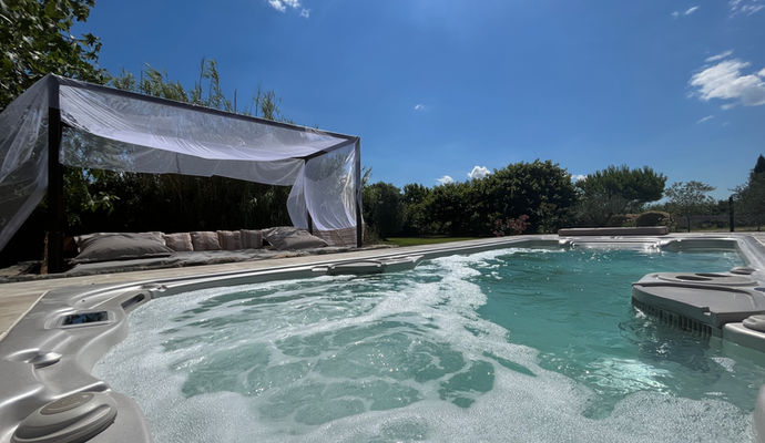 Cette demeure est composée d’un Mas ancien et de son pigeonnier datant du XVième siècle ainsi que de ses écuries, rénovés dans un style wabi sabi, minimaliste, authentique et artistique. Maison Tara verte dispose également d'un bassin avec fontaine et d'un spa de nage pour vous rafraîchir et vous détendre.